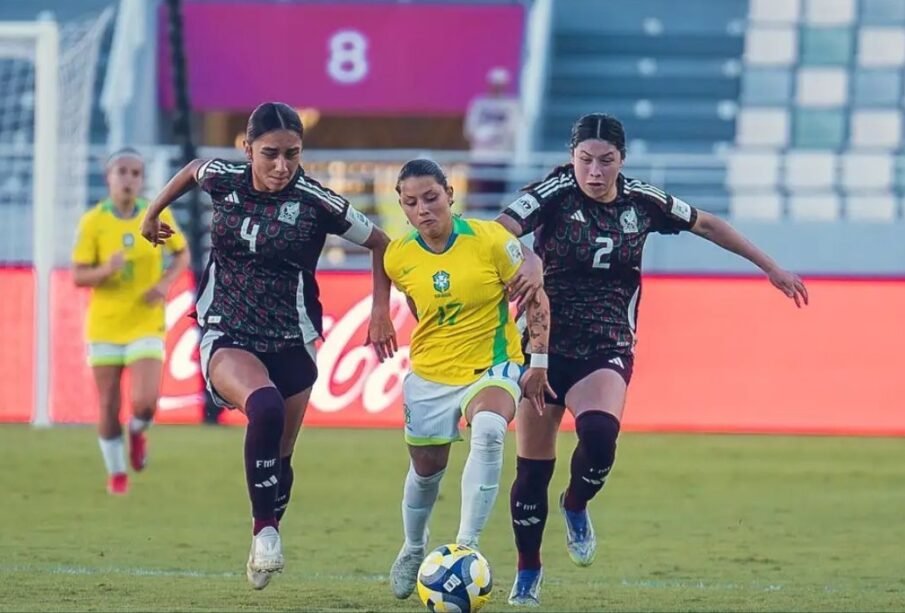 Nas cobranças de pênaltis, o Brasil começou bem, marcando com Gaby e vendo Ana Morganti defender a primeira cobrança adversária. No entanto, na sequência, os papéis se inverteram, com a seleção brasileira desperdiçando três cobranças, com Dulce Maria, Kaylane e Dany, enquanto o México converteu as três seguintes, encerrando a disputa em 3 a 1.
