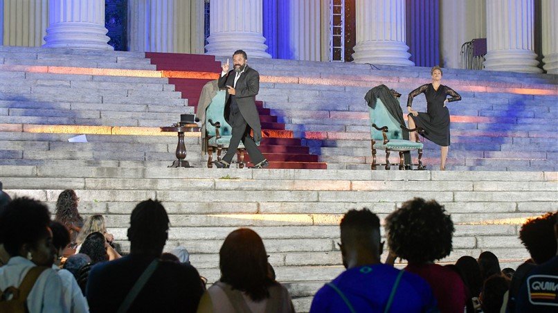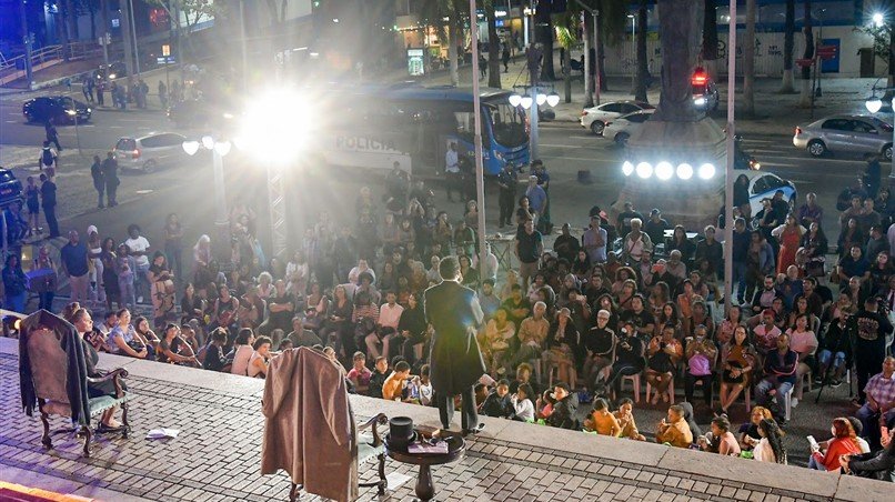 Na noite desta segunda-feira (25/08), a escadaria do Palácio Tiradentes recebeu o espetáculo teatral “Luiz Gama: uma voz pela liberdade”. O evento é gratuito e aberto ao público. Ele narra a trajetória de Luiz Gama (1830-1882), jornalista, advogado e protagonista do abolicionismo no Brasil.